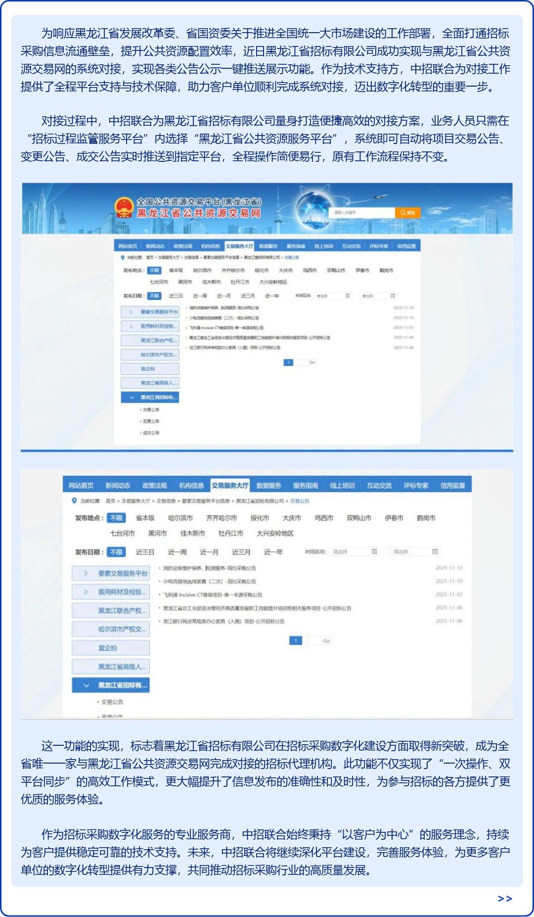中招联合助力黑龙江省招标有限公司成功对接省公共资源交易网